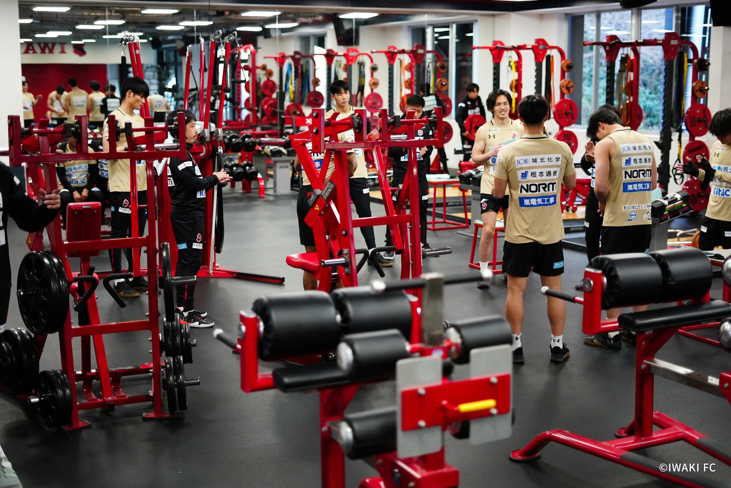 いわきFCでは、『日本のフィジカルスタンダードを変える』という標語があるほど、身体作り、特にストレングストレーニングに力を入れています。シーズン中であっても、週に2回ほど、チーム全体でのウエイトトレーニングを実施しています。これは他のクラブでは類を見ない取り組みです。シーズン途中に加入した選手と面談をした際、身体の状態を聞くと「ハンパないっス。毎日、筋肉痛で…。こんな状態で試合に出たことないですよ!笑」と半ば悲鳴のように話してくれました。選手によれば、いわきFCの練習は圧倒的に厳しいとのことです。